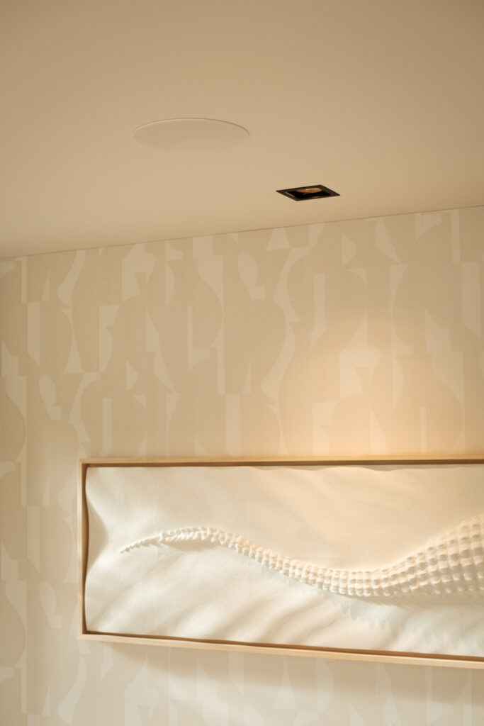 Het geluid in de lounge komt uit subtiel geïntegreerde Sonance inbouwspeakers in het plafond.